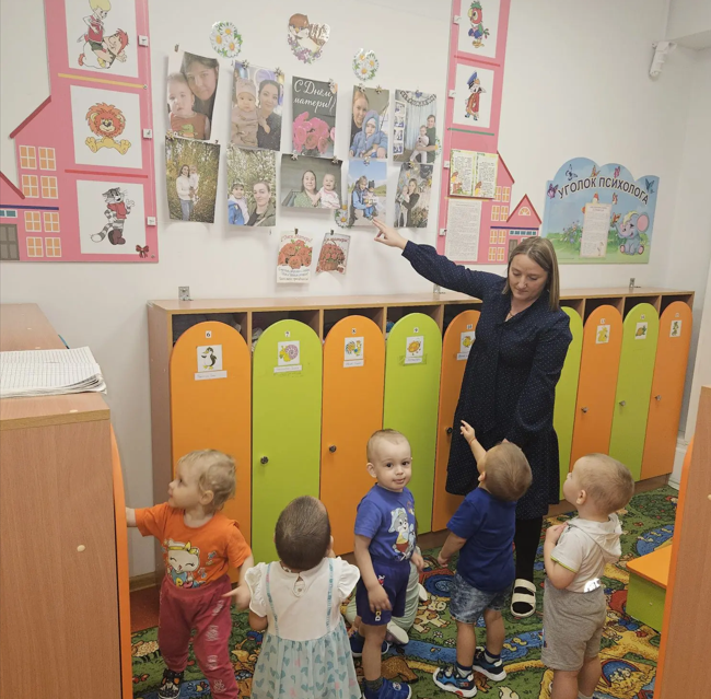 Среди многочисленных праздников, отмечаемых в нашей стране, День Матери занимает особое место. В этот день хочется сказать слова благодарности всем матерям, которые дарят детям любовь, добро, нежность и ласку. Не остались в стороне и воспитанники ясельной группы "Кроха". Малыши изготовили вместе с воспитателями поздравительные открытки, чтобы порадовать своих мам. Также возле фотовыставки, организованной в честь праздника, с детьми была проведена беседа "День матери". Они с большим интересом разглядывали фотографии и с лёгкостью находили своих мам, от чего радостно улыбались и хлопали в ладоши.