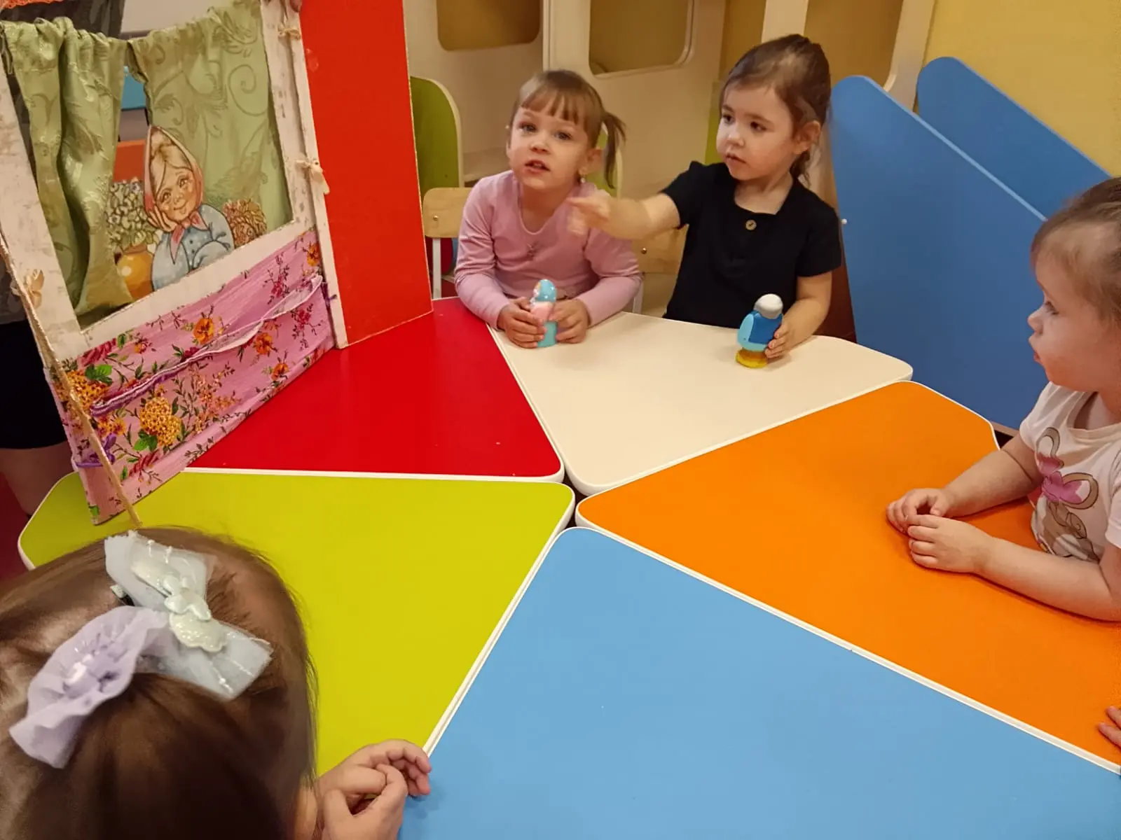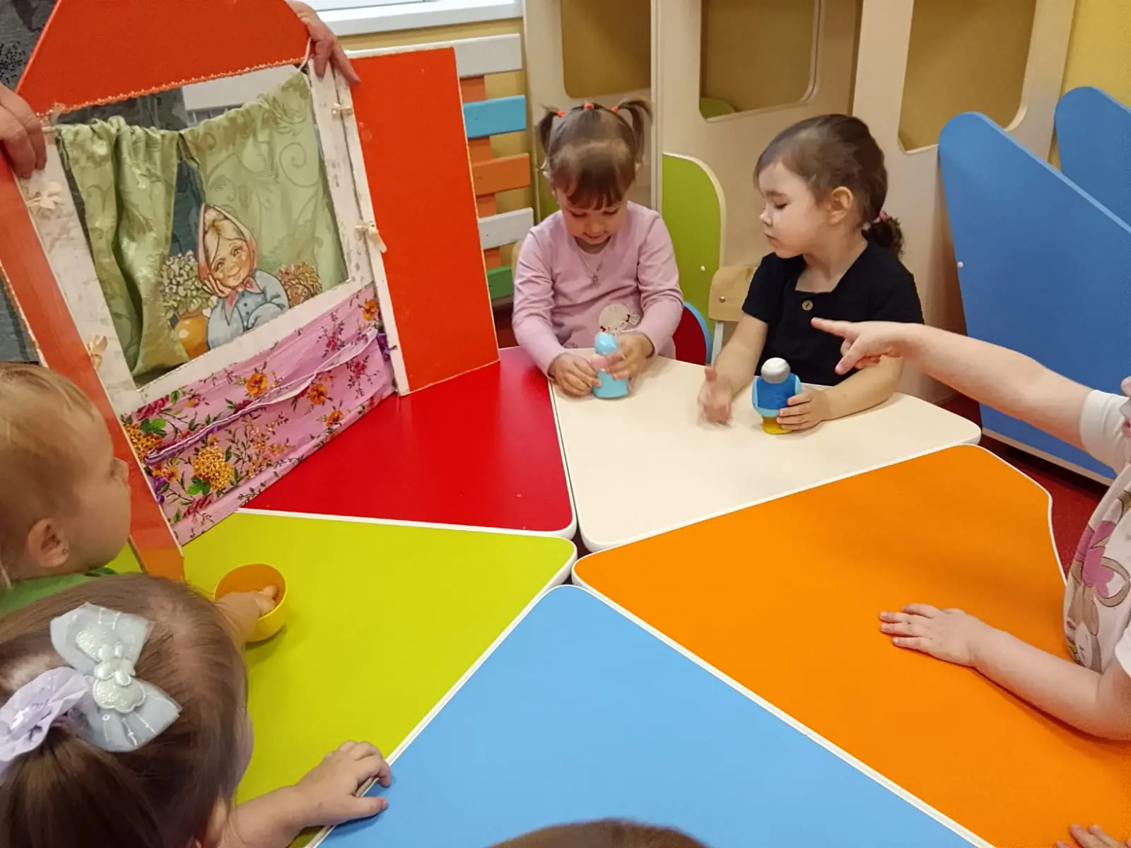 В группе «Бусинки» ко дню пожилых людей с целью воспитания любви и уважения к старшему поколению с детьми была проведена беседа «Спасибо вам бабушки и дедушки», в ходе которой педагог рассказал ребятам, какие бывают бабушки добрыми и любящими, дети вместе с воспитателем рассмотрели игрушки. В завершении ребятам прочитали стихотворение «У меня есть бабушка» Т. Маршановой.