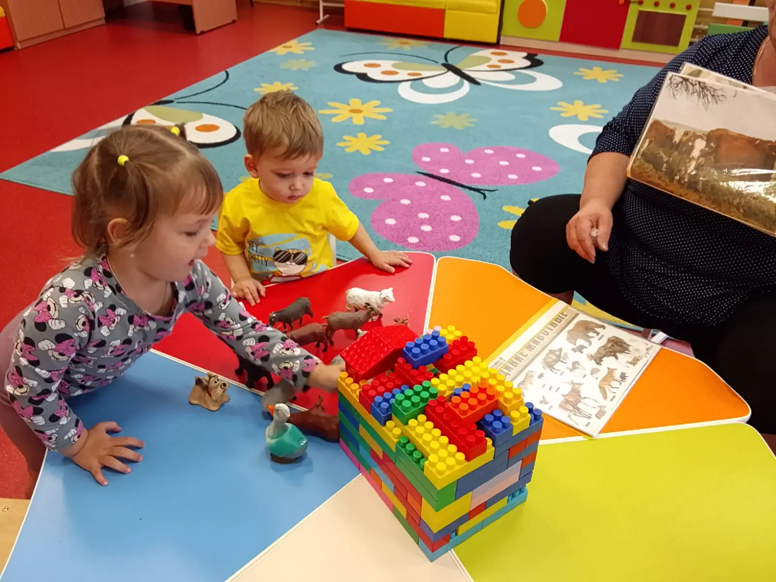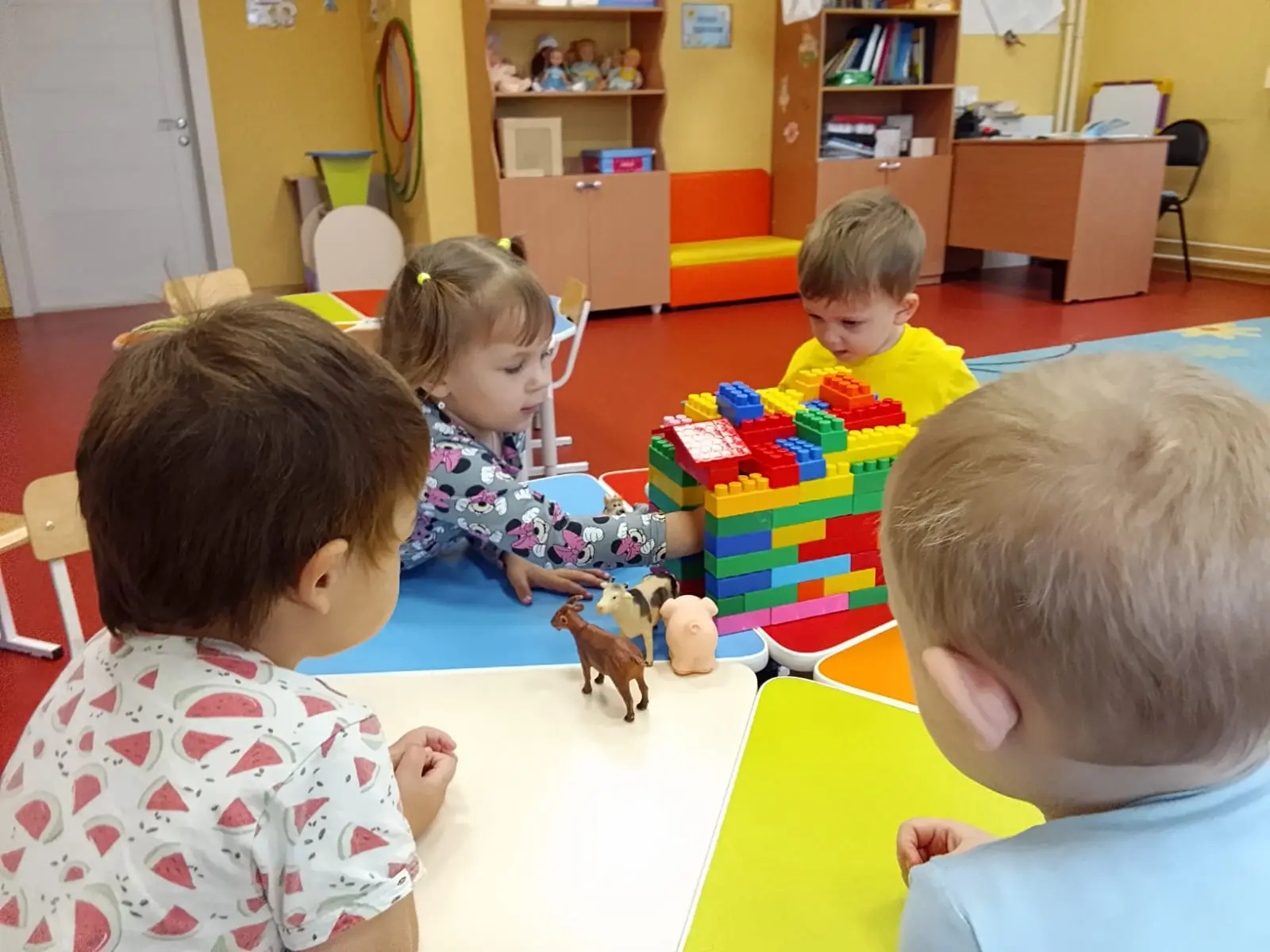 С целью формирования у детей добрых чувств к миру животных в группе "Бусинки" с ребятами прошла игра-беседа на тему, "День защиты животных". Дети получили новые знания о животных, научились проявлять заботу и бережное отношение к живым существам, а так же получили положительные эмоции. Рассматривая домашних и диких питомцев ребята рассказывали, как заботятся о них, играли с фигурками животных (Игра "Кто где живет") и строили для них домик из конструктора дом.