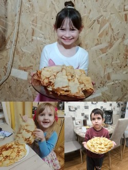 Началось наше знакомство с праздником... дома! Наши замечательные родители превратились в настоящих шеф-поваров. Всю неделю мы получали чудесные фотографии из семейных архивов: ребята вместе с мамами и папами пекли румяные блинчики, накрывали праздничные столы и делились своим теплом. Глядя на эти снимки, мы чувствовали, как в каждом доме живет радость и любовь к традициям. Спасибо вам за эти бесценные кадры!