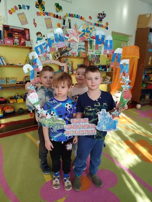 И вот уже более полувека ведутся исследования в области космоса. Много загадок таится в этом бесконечном пространстве, и каждый из нас не раз задумывался - что окружает нашу крошечную планету в космических просторах? В нашей группе "Солнышко" был  посвящен день космосу. Для расширения кругозора в группе были использованы иллюстрации о планетах, космонавтах спутниках, созвездиях.  В беседах с воспитателем дети узнали о людях покоривших космическое пространство. Узнав много интересного о вселенной, дети отражали в художественно – продуктивной деятельности. Узнав об открытиях в области этой науки, дети проникаются чувством гордости и уважения к своей стране, ее культуре, к соотечественникам, упорно стремящихся к цели, с неиссякаемой мощью познания и горячей любовью к Земле.